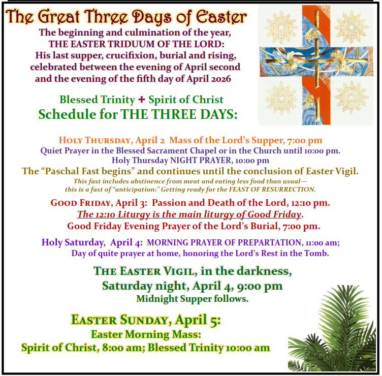 NEW at Blessed Trinity+Spirit of Christ?
